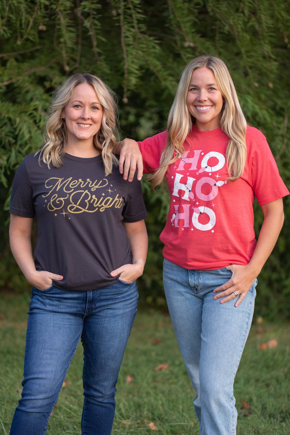 Unisex size, super soft. Ho Ho Ho Lightbulbs heather red shirt. Mixture of polyester and cotton material. Washes up and wears well.