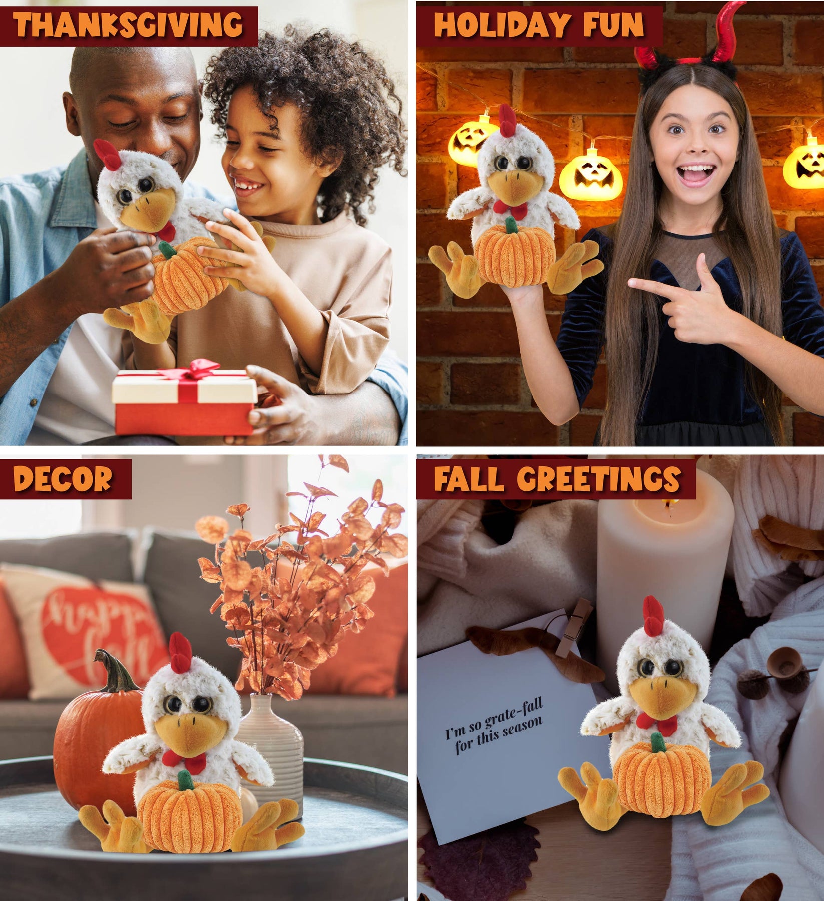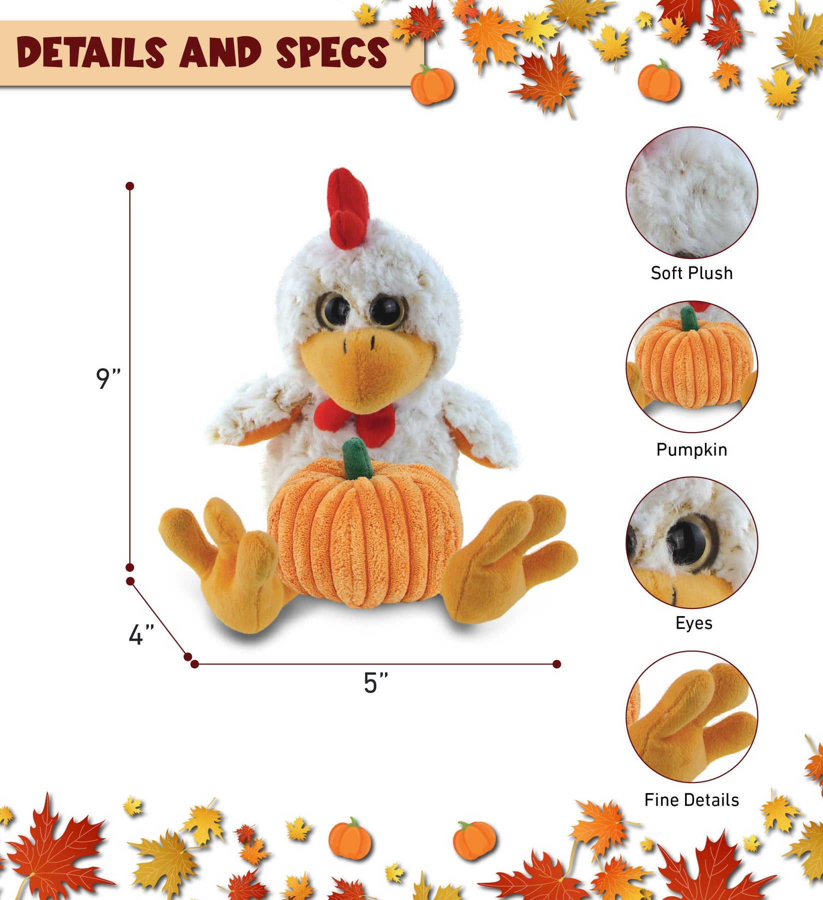 DolliBu Super Soft Sitting Rooster Stuffed Animal with Pumpkin Plush Decor - Rooster Pumpkin Plush Animal for Fall, Halloween and Thanksgiving, Pumpkin Plush Toy for Baby, Kids, Adults - 9 Inches